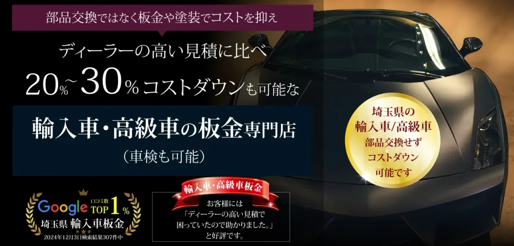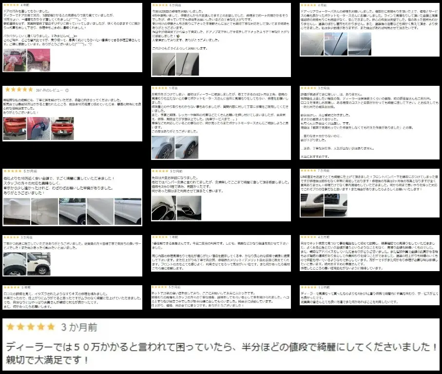 傷や凹みを消す板金作業や塗装も外注しないから中間マージンがありません